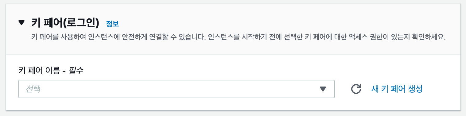 그 다음이 제일 중요합니다. 이제 키 페어를 생성할 겁니다. 여러분이 만든 인스턴스를 다른 사람들이 함부러 사용하면 안되겠죠? 그래서 AWS에서는 키 페어를 생성하게 합니다. 여러분이 인스턴스에 접근하려 하면 AWS는 여러분에게 “너가 이 인스턴스의 주인임을 증명해봐!” 라고 할 것 입니다. 그때 여러분은 키 페어를 이용해서 스스로를 인증하는거죠. 키 페어의 이름은 자유롭게 입력하시고, .pem형식으로 발급 받아 주세요. 그러면 .pem의 확장자를 가진 파일이 하나 다운로드 될 것 입니다. 그 파일을 잘 가지고 계셔야 합니다.
