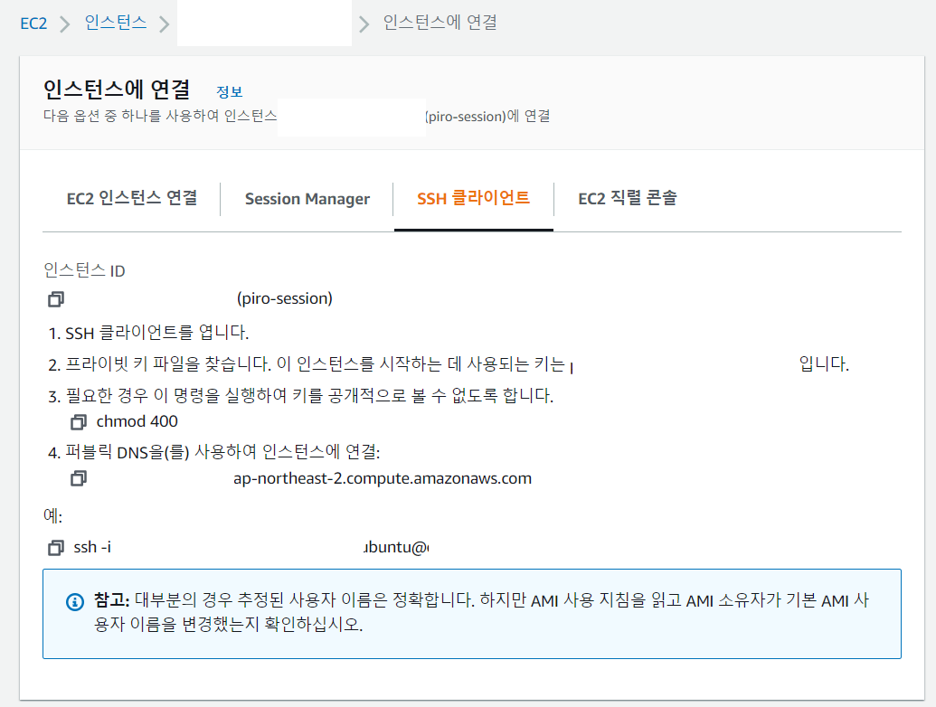 맨 아래 4번 퍼블릭 DNS을(를) 사용하여 인스턴스에 연결: 아래의 예: 라고 적힌 ssh 로 시작되는 명령어를 복사해주세요.