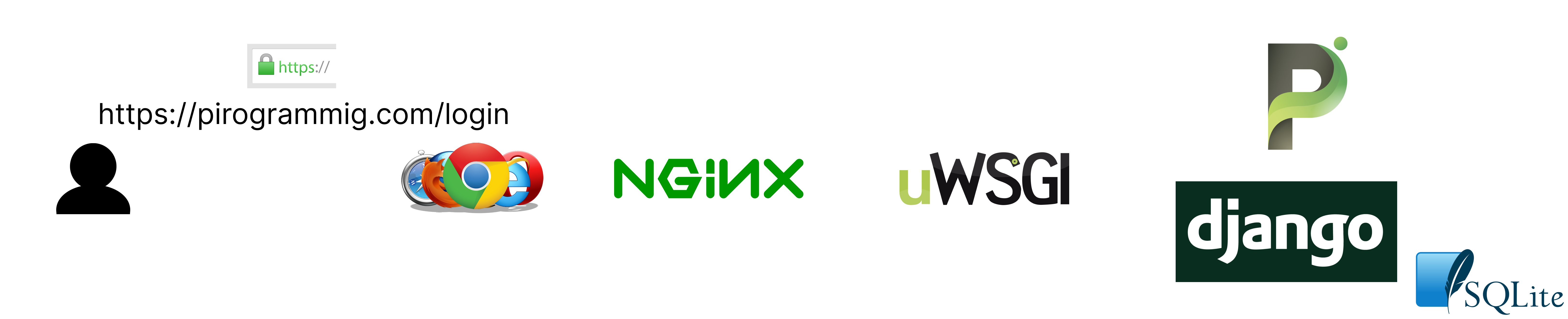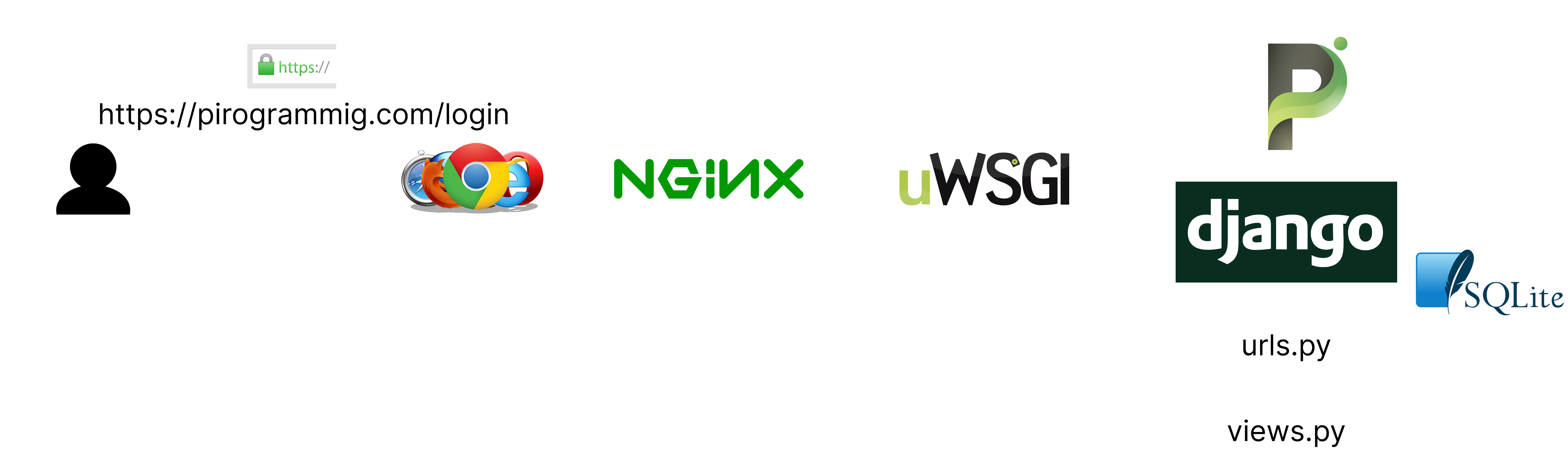NGINX를 다시 만났는데 이번에는 사용자의 아이디와 비밀번호를 데이터베이스에서 찾아와서 비교해야겠죠? 동적 리소스를 필요로 하기 때문에 WS에서는 처리가 불가능합니다. 따라서 NGINX는 uWSGI 라는 인터페이스 혹은 채널을 통해서 피로그래밍 서버에게 사용자의 요청을 전달합니다.