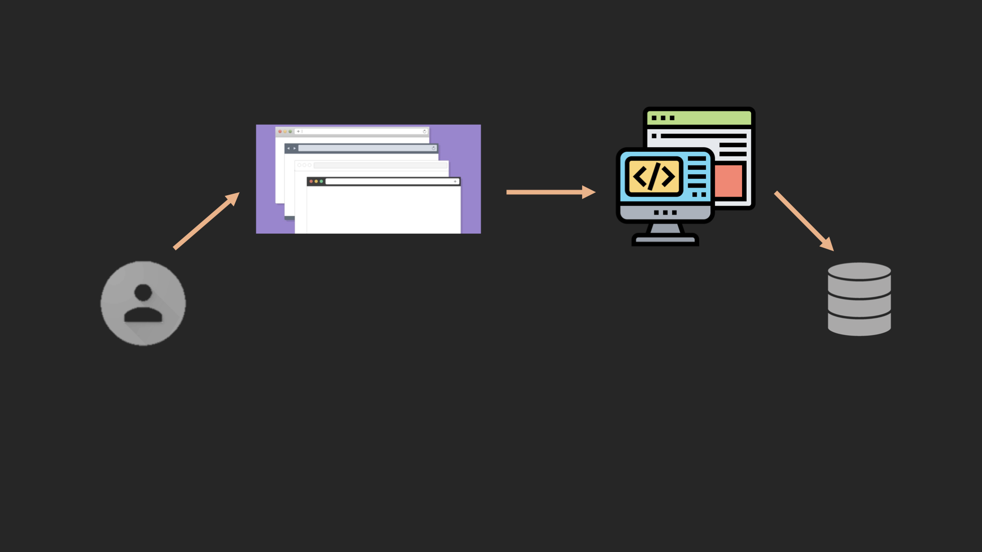유저가 어떤 웹 서비스를 사용할 때 웹 사이트에 어떤 요소를 클릭하면 프론트엔드에서 백엔드로 유저가 무엇을 클릭했는지를 전달 합니다. 그럼 백엔드에서 그 요청에 해당하는 데이터를 데이터 베이스에서 가져온 뒤에 프론트에게 다시 전달을 하구요. 프론트는 백으로부터 전달 받은 데이터를 예쁘게 꾸며서 유저에게 보여주면서 유저가 웹 서비스를 사용하게 됩니다.