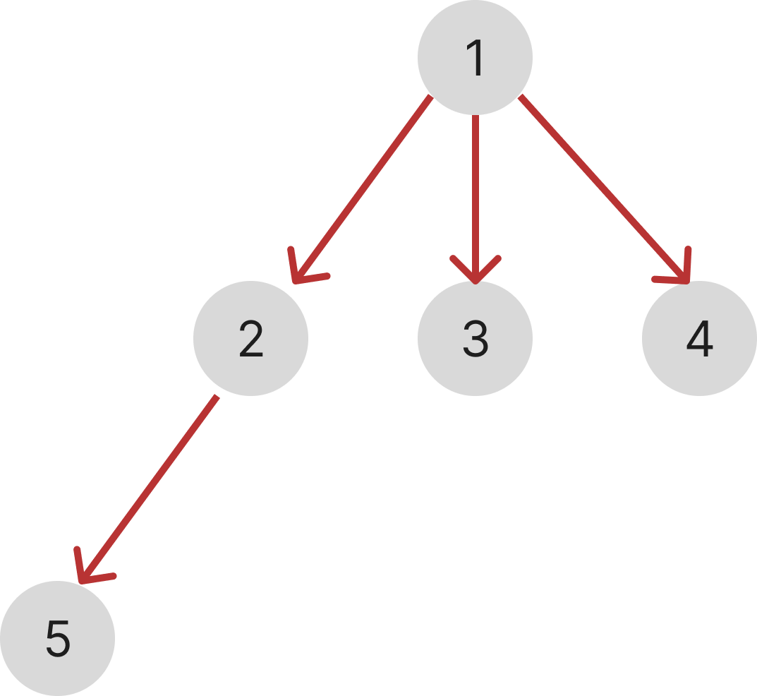 | 서브트리의 정점 수 (DP) | 5 | 2 | 1 | 1 | 1 |